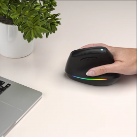 Les souris dites « verticales » permettent d’éliminer la torsion de l’avant-bras et ainsi de placer son bras dans une position plus naturelle. Le déplacement de la souris est alors effectué par l’épaule et le bras, ce qui permet de réduire la pression sur le poignet.