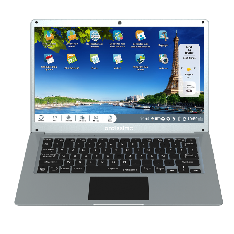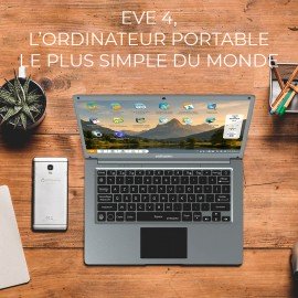 Avec son écran de 14 pouces (35,6 cm), sa très grande finesse, sa Webcam intégrée, et sa connexion au réseau sans fil Wi-Fi, l'ordissimo Eve 4 est un ordinateur pratique et complet. Son disque dur de 256 Go SSD M.2 assure une réactivité parfaite. Doté d'une finition gris acier, il est également très fin, sa finesse et sa légèreté fera des envieux. Sa grande facilité en fait le parfait compagnon de ceux qui veulent se simplifier la vie !